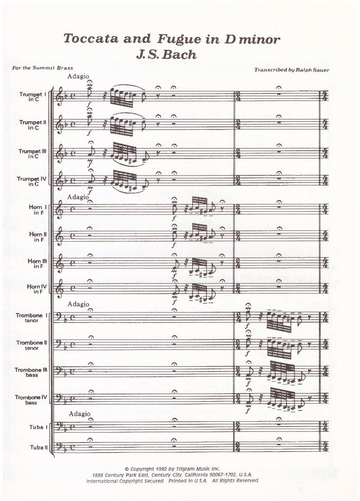 • TOCCATA-FUGUE D minor Brass Choir/Bach Transcribed by Ralph Sauer