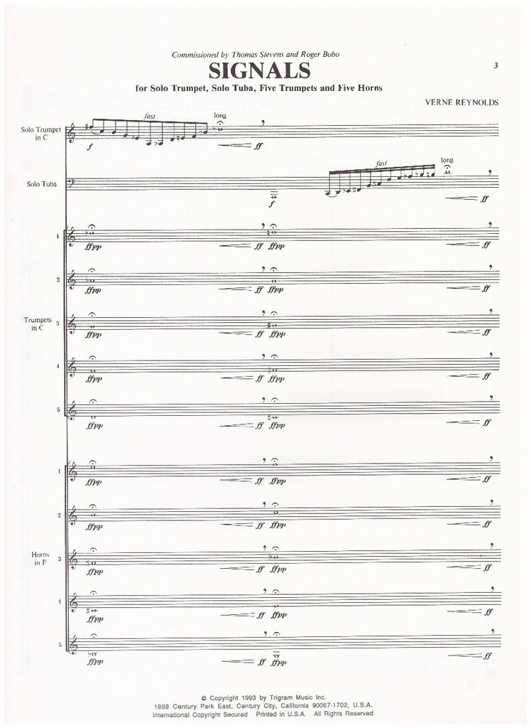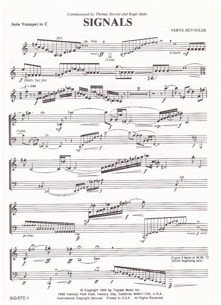 • SIGNALS Solo Trumpet & Tuba & Brass Choir/Verne Reynolds Commissioned by Thomas Stevens & Roger Bobo