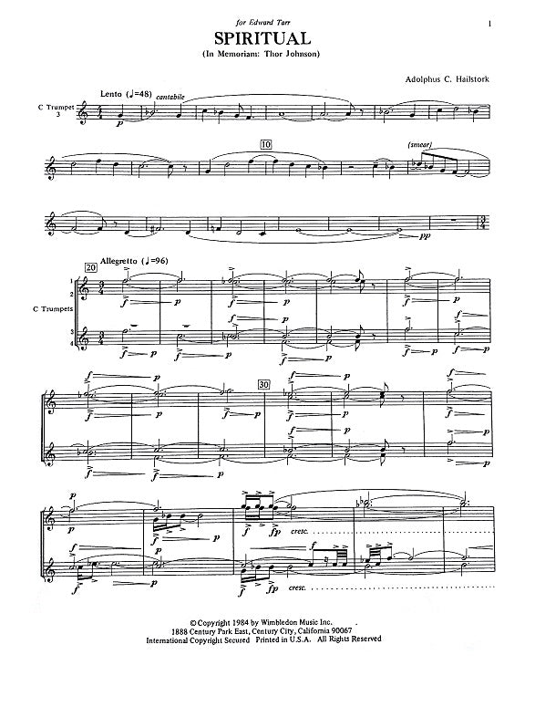 • SPIRITUAL 4 Trumpets & 4 Trombones/Adolphus C. Hailstork