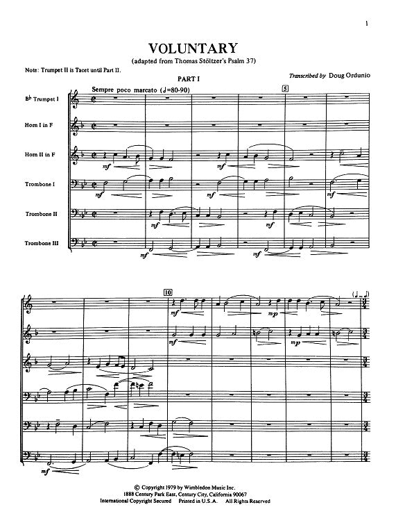 • VOLUNTARY Brass Choir/adapted from Thomas Stoeltzer's Psalm 37 Transcribed by Doug Ordunio