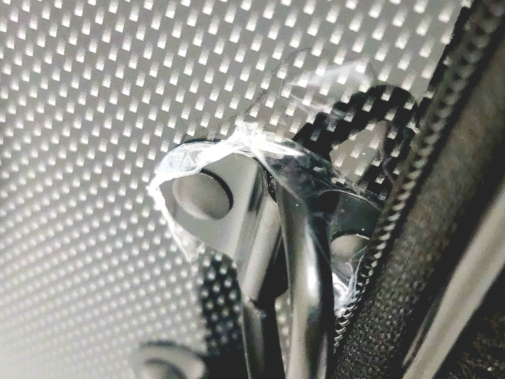 - Case is new, each (faux) carbon half has a thin layer of protective clear plastic sheeting on it, like shrink wrap, likely to protect it during fabrication and transport. Some pulled off when removing a sticker and then I pulled more, but you can see edges here and there where I stopped. If you pick at it eventually you'll get it all. It's supposed to come off but having a little razor blade to get all the little bits at the edge would help.