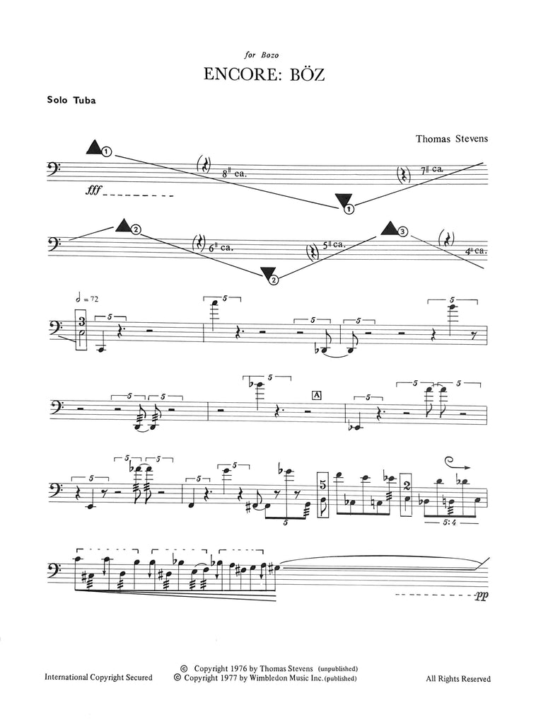 Encore Boz for Solo Tuba by Thomas Stevens, Pub. Wimbledon